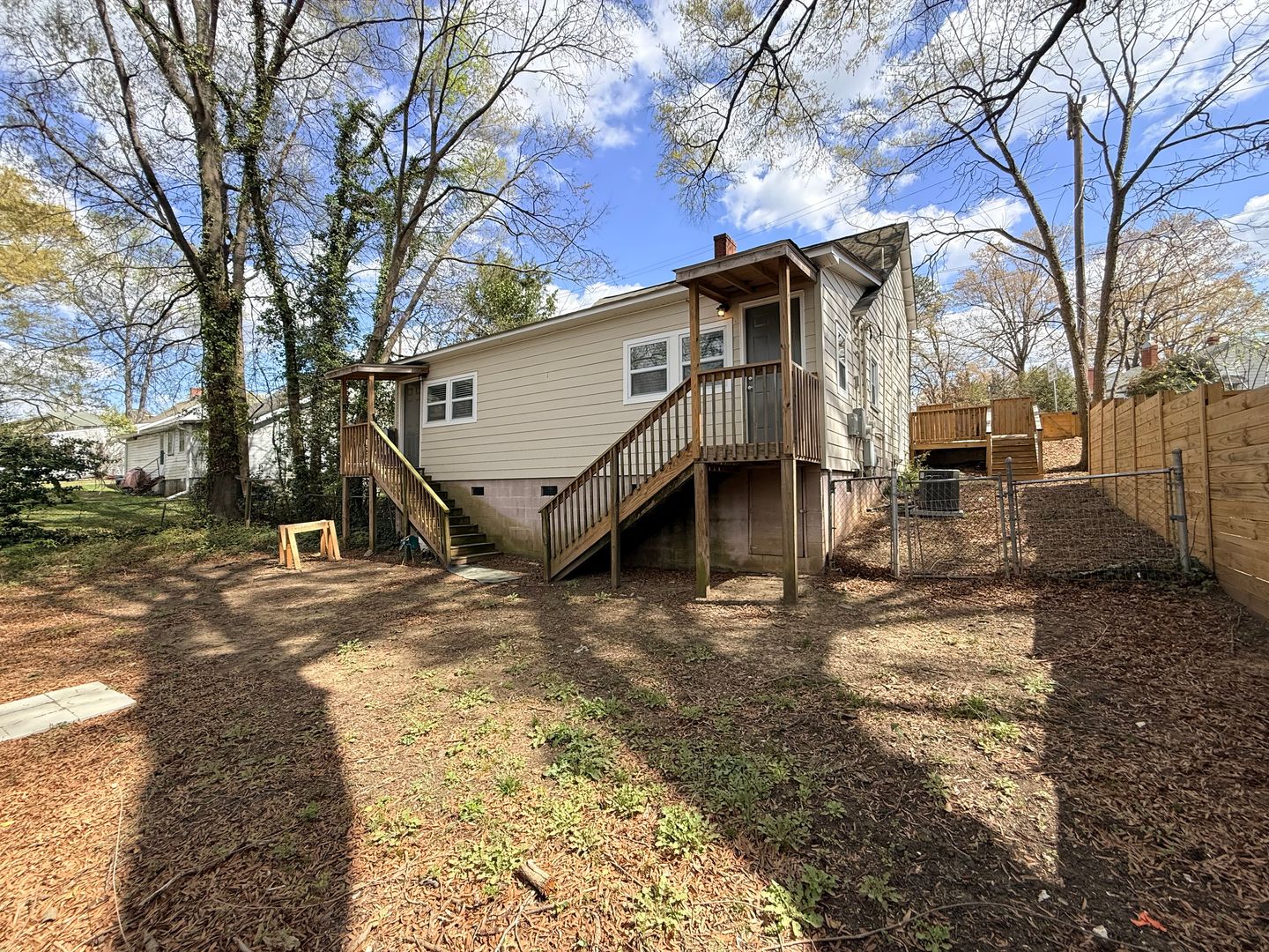 Discover this one-bedroom, one-bath apartment in Durham, NC, featuring a welcoming front porch and ceiling fans for comfortable living. The unit comes with personal trash bins and lawn care included, and residents share access to a fenced, large backyard—ideal for outdoor time and gatherings. Located within walking distance to downtown, the property offers convenient access to shops, dining, and transit. Practical and well-maintained, this apartment provides a simple, low-maintenance option in a central Durham location.